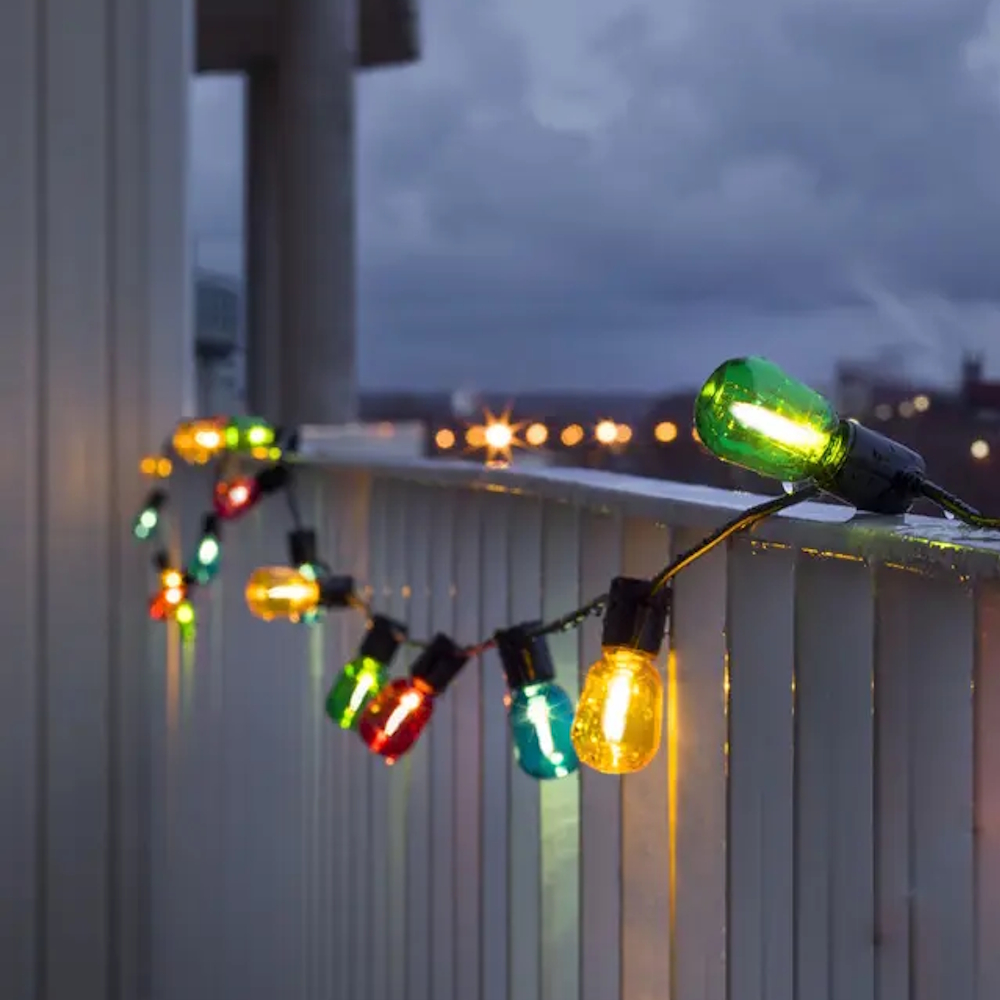 Partyslinga för uteplatsen med 20 st minder multifärgad LED, slingan har inbyggd dimmer och lampavståndet är 25 centimeter.