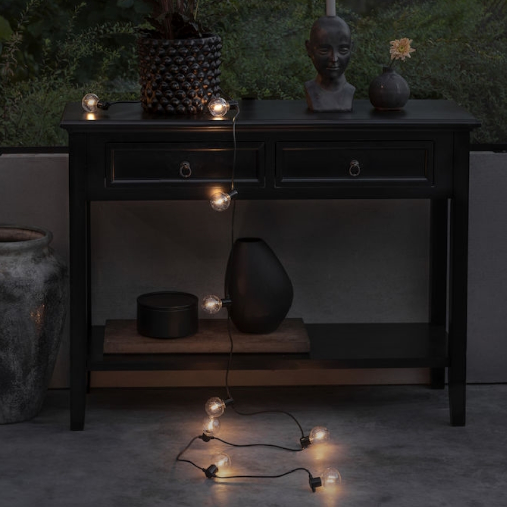 Ljusslinga E14 10 LED 4xAA IP44 Amber/Svart Konstsmide