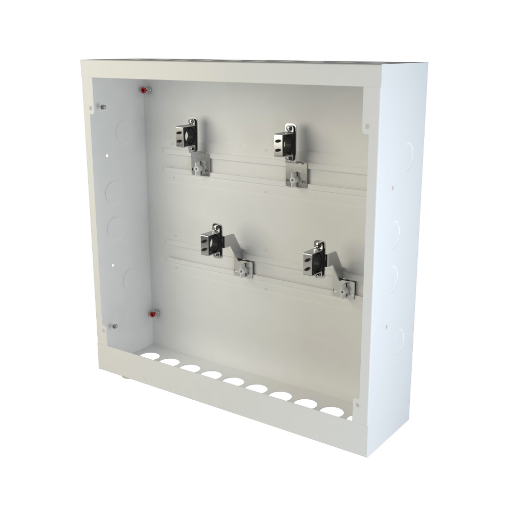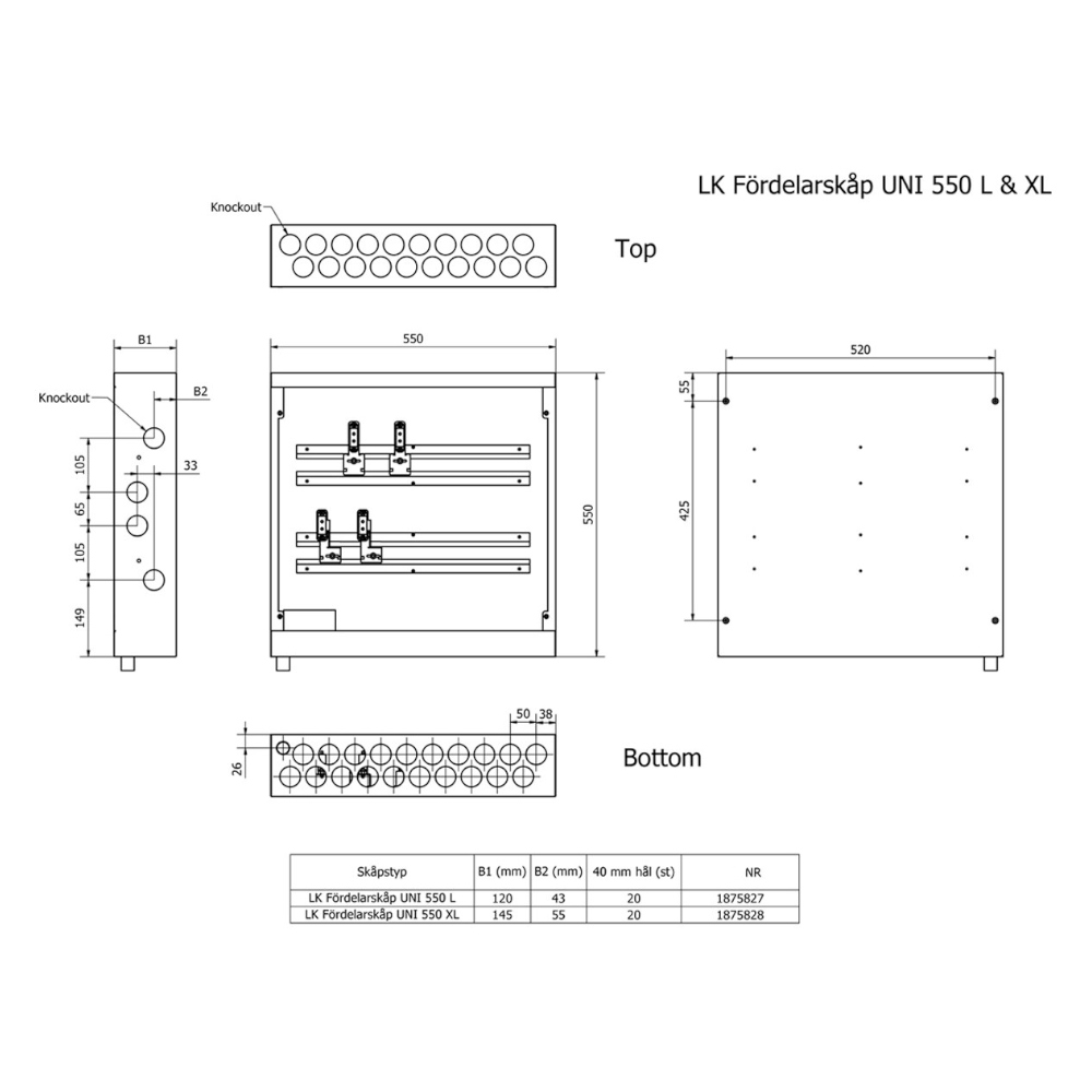 Fördelarskåp UNI 550 L ger mer utrymme för isolering av stammarna är tillverkade av pulverlackerad stålplåt, vit kulör RAL 9016.