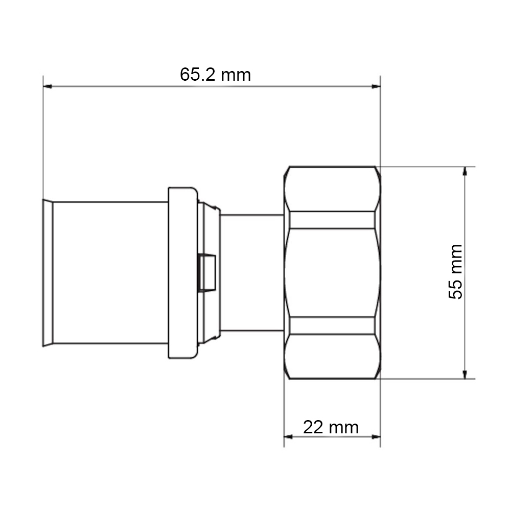 Presskoppling för sammanfogning av LK PAL samt LK PE-X Universalrör. Kopplingen har metallisk tätning mot LK Kulventil hög hals, M-Gänga som finns i motsvarande dimension M26 - M70. Alla dimensioner har gult kopplingshus.