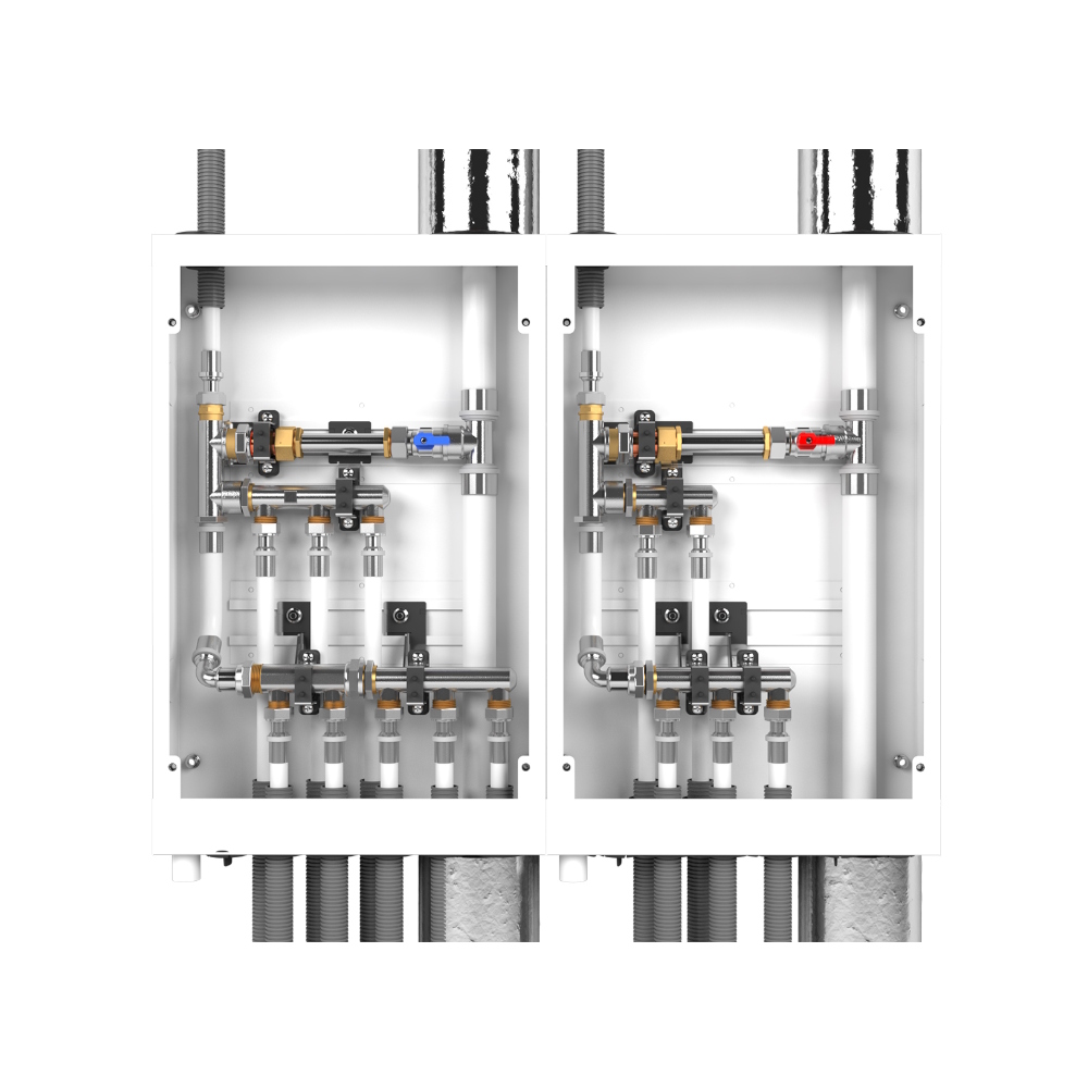 Ram/lucka för två stycken UNI 350 skåp monterade sida vid sida inbyggt i vägg. Ska ej monteras i rum med tätskikt på vägg. Tillverkat av 1mm pulverlackad stålplåt, vit kulör RAL 9016. Som standard är luckan försedd med 2st skruvmejsellås och som tillbehör finns nyckellås.