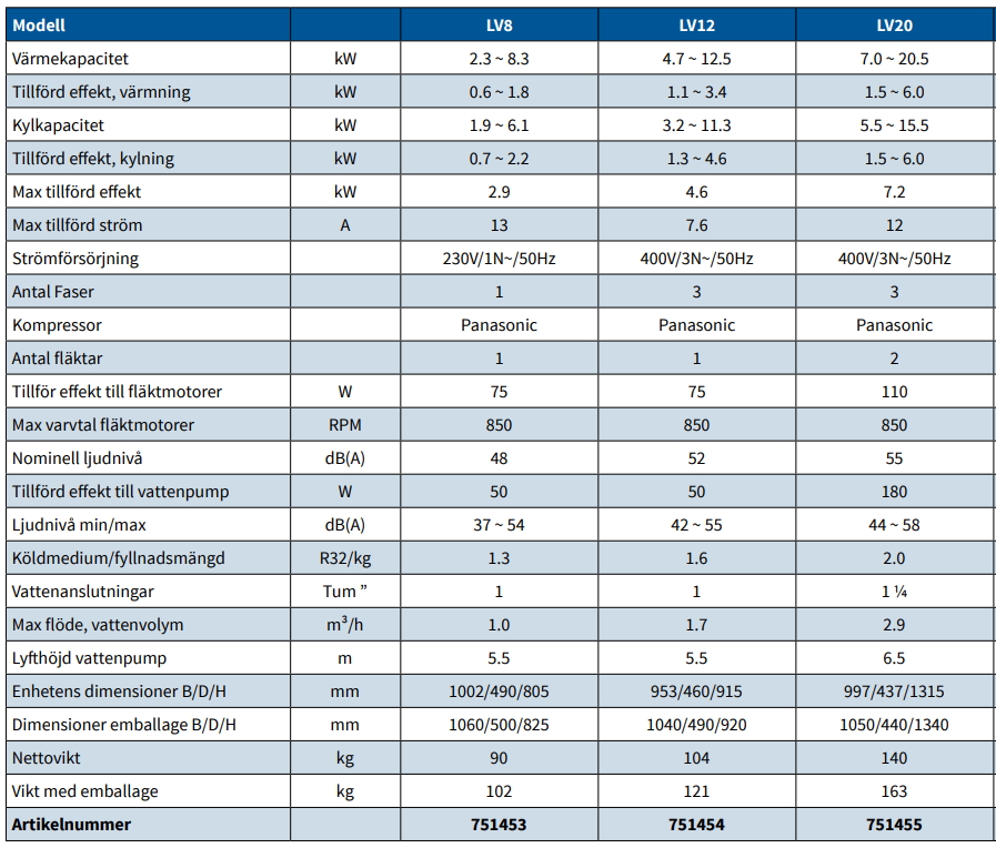 Luft-/vattenvärmepumpar Perifalpumpen LV 8, 12, 20