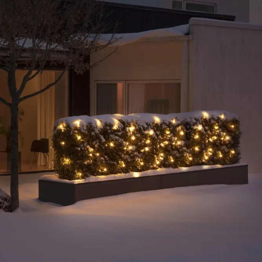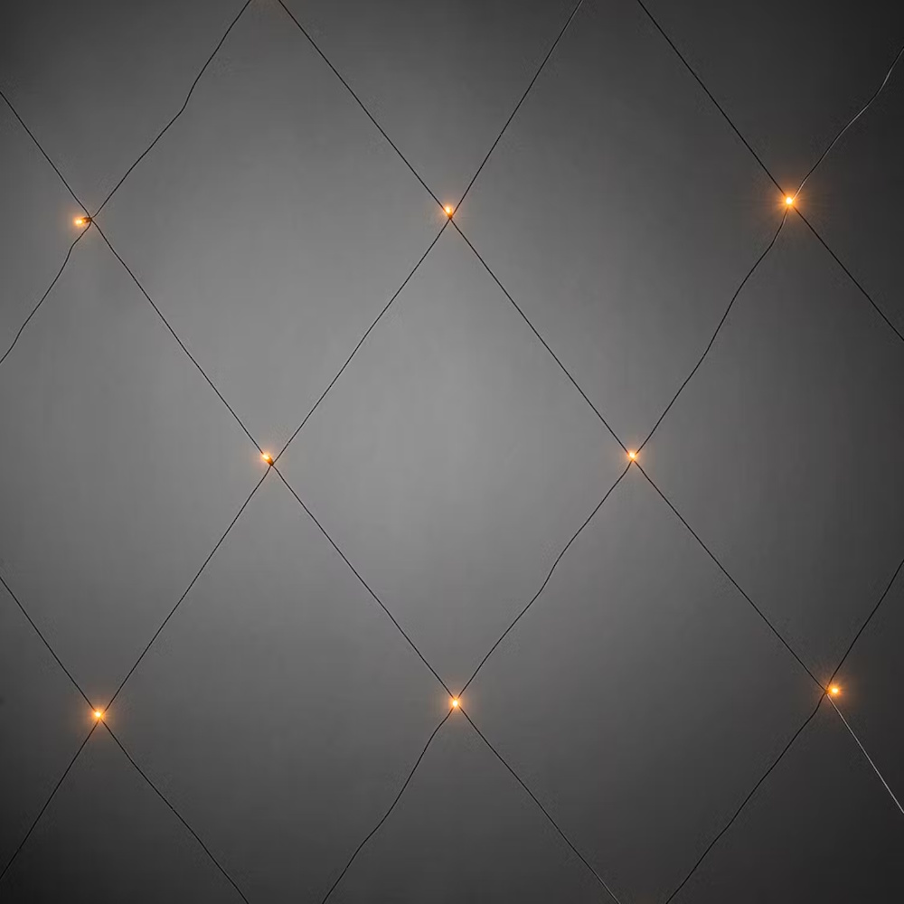 Ljusnät på 1x1 meter med 32 st amberfärgade LED-lampor, anpassat för utomhusbruk och passar bra på buskar och häckar. [Energiklass G]