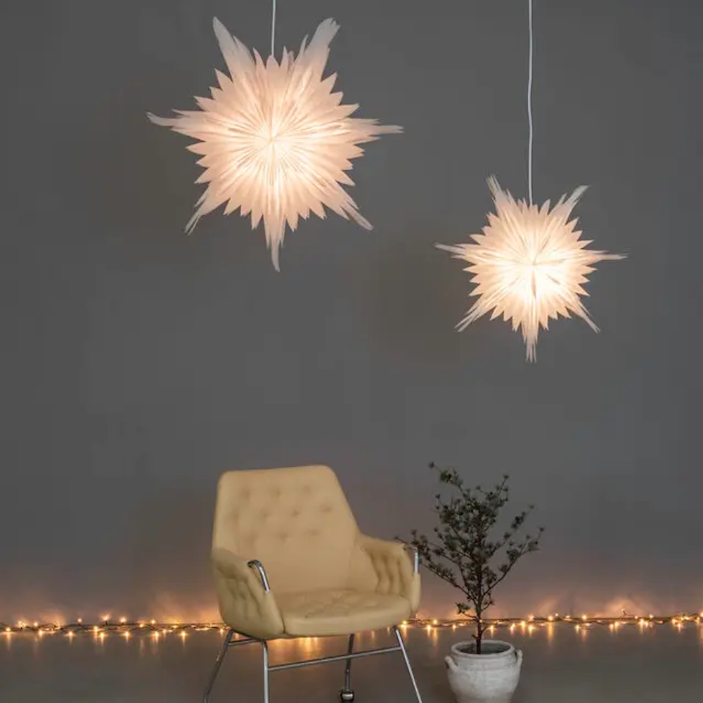Vacker julstjärna i papper som skapar en mjuk känsla i rummet. Pappersstjärnan är 60cm inklusive vit kabel med strömbrytare.