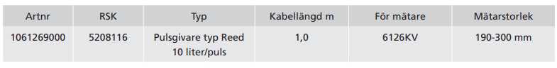 Pulsgivare med kabel, 10 liter/puls typ Reed.