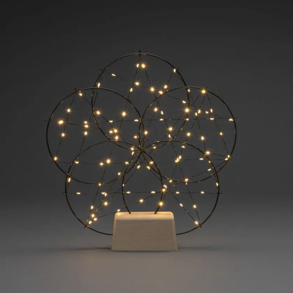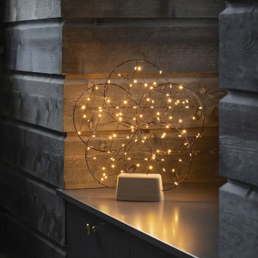 Dreamflower diameter 40 cm med 100 amberfärgade LED. En elegant bordsdekoration i form av en blomma. Denna drömfångare sprider ett mjukt ljus och blir ett vackert inslag i både vardagsrum och sovrum. Perfekt för dig som vill skapa mysig stämning i hemmet.