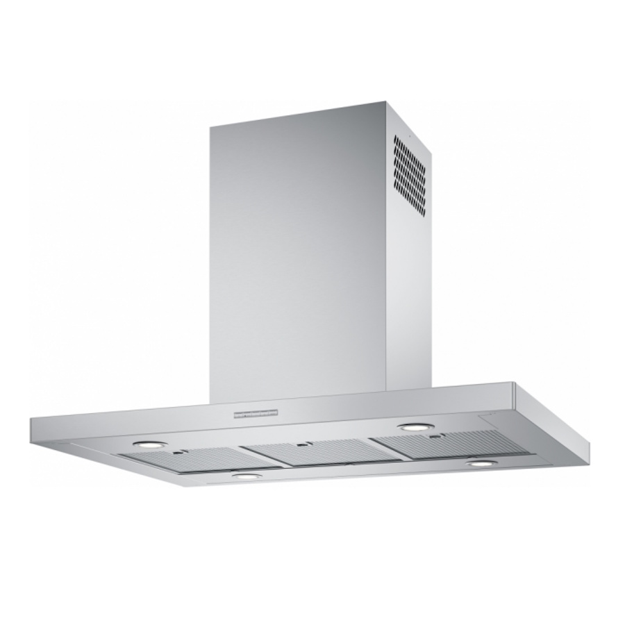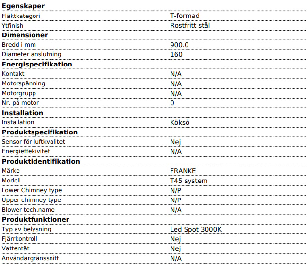 T45 792-10/12, frihängande kåpa med potentialfri kontakt för möjlighet att skicka styrsignal till motordrivna spjäll eller aggregat . Kan även användas i fastigheter med tryckstyrd centralfläkt., 90cm, rostfri, metalltrådsfilter, elektriskt timerstyrt plåtspjäll med potentialfri kontakt, justerbart grund- och forceringsflöde, Spot-LED 3000K, tillverkad i Sverige