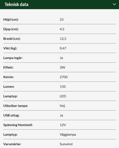 Vägglampan passar utmärkt som läslampa i stugan och levereras med en varmvit LED-lampa integrerad. Den har en vridbar arm som gör det möjligt att rikta ljuset dit du vill.