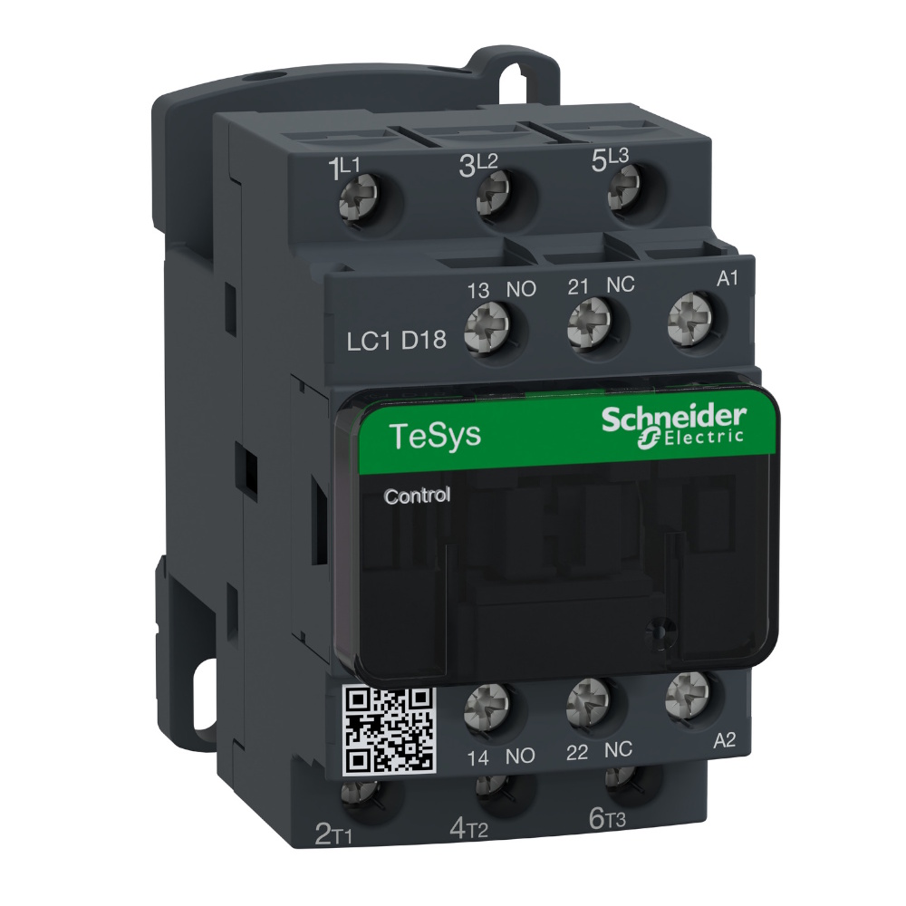 TeSys D-kontaktor, 3 poler (3 normalt öppna), för motorstyrning upp till 18A/690V AC-3/3e (7,5kW på 400V). Den tillhandahåller en 230V 50/60Hz AC-spole, 1NO+1NC inbyggda hjälpkontakter (NC-spegelcertifierade), anslutning med skruvklämmor. För drifthastigheter upp till 3600 cykler/timme och miljöer upp till 60°C, ger den hög tillförlitlighet och hållbarhet. Kompakt (45 mm bredd), DIN-skena montering eller skruvfäste. Multistandardcertifierade (IEC, UL, CSA, CCC, EAC, Marine), Green Premium-kompatibel (RoHS/REACh).