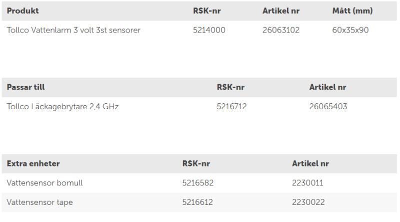 Vattenlarmet är ett perfekt komplement till Tollcos golv- och vitvaruskydd.