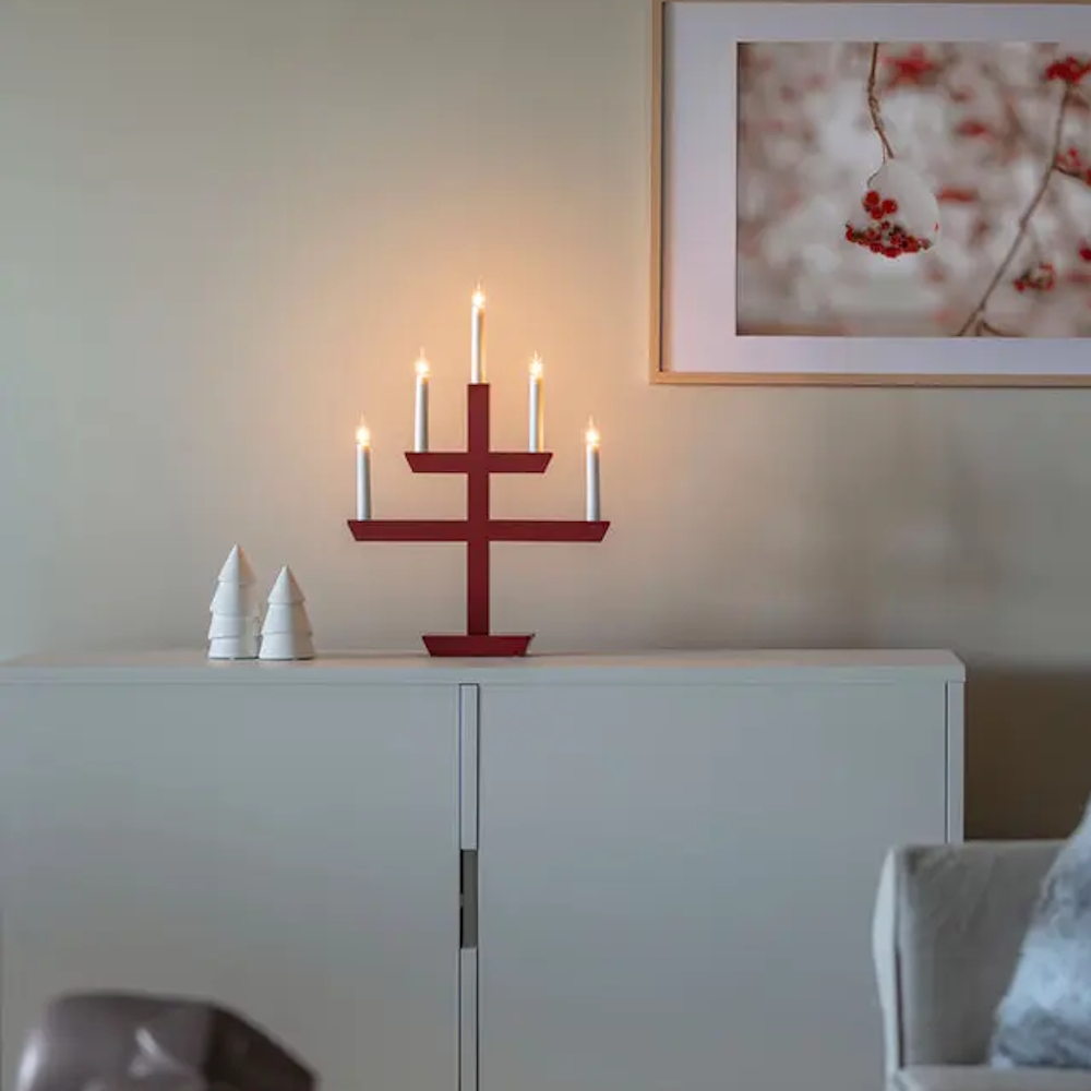 Träljusstake 5 Lampor E10 230V IP20 Röd Konstsmide