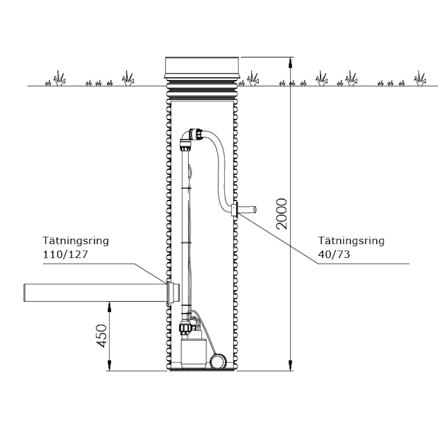 Uponor Infiltration Pumpbrunn 450 mm 2 m Med Pump Xylem SXM3