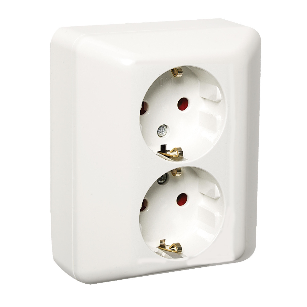 Vägguttag för utanpåliggande montage, 2 vägsuttag av säkerhetstyp, can monteras på dosa eller direkt på vägg, dubbla anslutningar per fas.