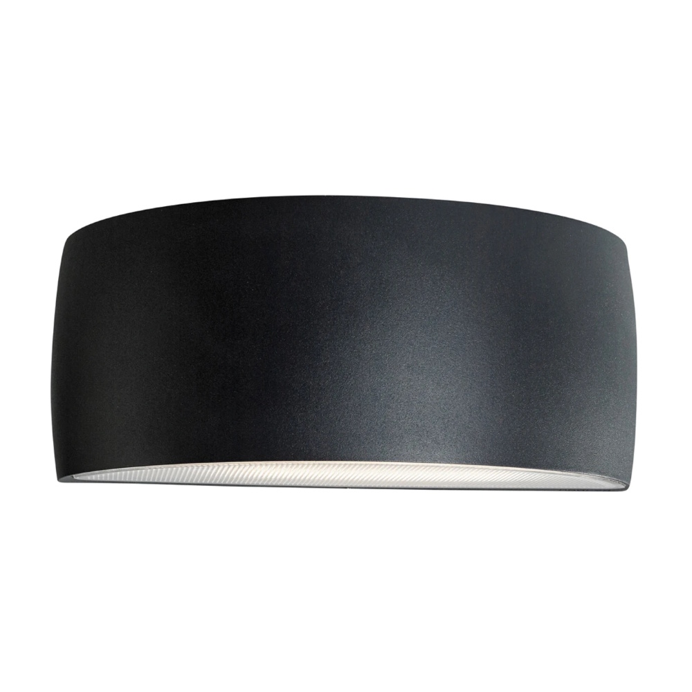 En kraftig väggarmatur för upp och nedljus, tillverkad i gjuten aluminium med ett polykarbonat glas i optisk struktur, finns i flera färger.