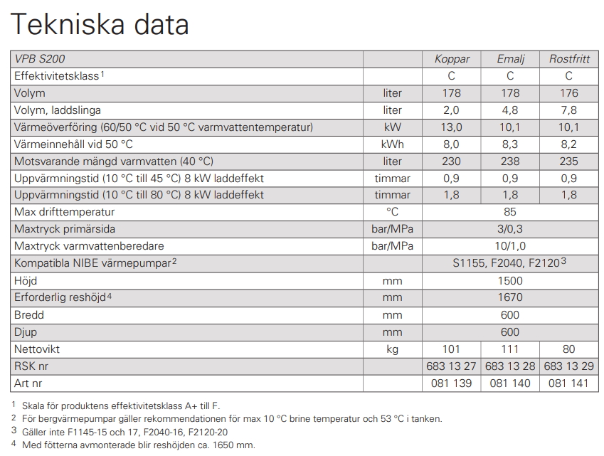 Vattenvärmare NIBE VPB S200